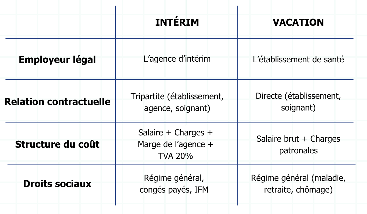 - À l'inverse, la vacation (CDD) repose sur une structure de coût épurée, sans intermédiaire et sans TVA.